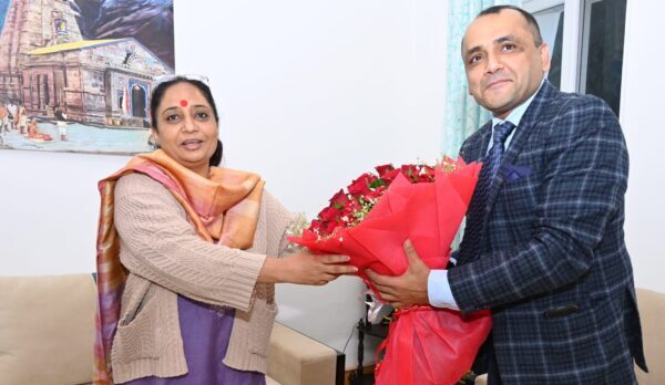 देहरादून : उत्तराखंड के नवनियुक्त डीजीपी अभिनव कुमार ने कार्यभार संभालने के बाद उत्तराखंड विधानसभा अध्यक्ष ऋतु खण्डूडी भूषण से देहरादून यमुना कॉलोनी स्थित उनके शासकीय आवास पर शिष्टाचार भेंट की| इस अवसर पर विधानसभा अध्यक्ष ने नवनियुक्त डीजीपी को बधाई एवं शुभकामनाएं दी। इस शिष्टाचार भेंट के दौरान उन्होंने आपस में कानून व्यवस्था से संबंधित विभिन्न गतिविधियों व मुददों पर बातचीत की तथा अपने अनुभवों को सांझा भी किया।