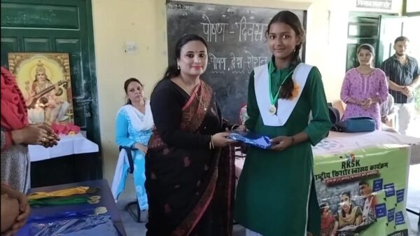 कोटद्वार । राजकीय बालिका इंटर कॉलेज घमंडपुर कोटद्वार में अमेरिकन इंडियन फाऊंडेशन के तत्वाधान में स्कूली बालिकाओं के लिए पोषण दिवस का आयोजन किया गया। कार्यक्रम का शुभारंभ आमंत्रित अतिथियों द्वारा दीप प्रज्ज्वलित कर किया गया। इसके पश्चात बालिकाओं द्वारा सरस्वती वंदना एवं स्वागत गीत प्रस्तुत किया गया। पोषण दिवस पर प्रभारी बाल विकास परियोजना अधिकारी दुगड्डा शिवाली द्वारा बालिकाओं को पोषण एवं स्वास्थ्य पर जानकारी देते हुए महत्वपूर्ण नन्दा गौरा योजना के बारे में भी बताया गया। स्वास्थ्य विभाग द्वारा भी बालिकाओ से स्कूल में वितरित आयरन फोलिक एसिड की गोली खाने की अपील की गई। कार्यक्रम में स्कूली छात्राओं के मध्य भाषण प्रतियोगिता, पोषण पोस्टर प्रतियोगिता, नुक्कड़ नाटक, पोषण आधारित क्विज शो इत्यादि आयोजित करवाए गए एवं प्रथम, द्वितीय, तृतीय श्रेणी के विजेताओं के साथ साथ सांत्वना पुरस्कार भी वितरित किए गए। कार्यक्रम का सफल संचालन अध्यापिका रजनी रावत द्वारा किया गया। कार्यक्रम में अमेरिकन इंडियन फाऊंडेशन की टीम के साथ साथ प्रभारी प्रधानाचार्य एकता वर्मा एवं शिक्षिकाओं ने भी भाग लिया।