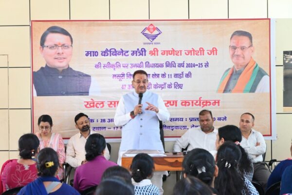 अपने सम्बोधन में कैबिनेट मंत्री गणेश जोशी ने सभी को दीपावली की बधाई एवं शुभकामनाएं देते हुए कहा कि शिक्षा हमारे समाज का एक महत्वपूर्ण हिस्सा है, और शिक्षा के बिना किसी भी देश या समाज का विकास नहीं हो सकता। उन्होंने कहा कि इसी को ध्यान में रखते हुए हमने अपनी मसूरी विधानसभा के 47 आंगनवाड़ी केंद्रों में पढ़ रहे बच्चों को खेल और पढ़ने-लिखने की सामग्री देने की शुरुआत की है। उन्होंने कहा कि ये बच्चे देश का भविष्य हैं और इन्हें सही राह दिखाना हमारा कर्तव्य है। उन्होंने कहा कि प्रधानमंत्री मोदी का “बढ़ेगा इंडिया तभी तो आगे बढ़ेगा इंडिया” नारा तब ही साकार होगा जब हमारे ये बच्चे पढ़ाई में आगे बढ़ेंगे। उन्होंने कहा कि प्रधानमंत्री नरेंद्र मोदी के मार्गदर्शन और मुख्यमंत्री पुष्कर सिंह धामी के नेतृत्व मे हमारी सरकार द्वारा निरंतर किए जा रहे जनहित के कार्यों को आगे बढ़ाते हुए मसूरी विधानसभा क्षेत्र के सभी आंगनवाड़ी केंद्रों के बच्चों को नि:शुल्क पठन सामग्री, खेल सामग्री, वाटर बॉटल, टिफिन बॉक्स, और अन्य ज़रूरी सामग्री देने का निर्णय किया है।
