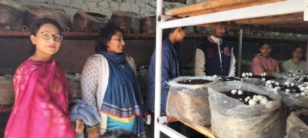 नंदानगर : मशरूम की खेती,भांग और कंडाली के रेशे बनाने वाले उद्यमियों से मिले नंदानगर महाविद्यालय के छात्र । 17 मार्च 2024 को शहीद जगदीश प्रसाद पुरोहित राजकीय महाविद्यालय नंदानगर (घाट) में देवभूमि उद्यमिता योजना के अंतर्गत 12 दिवसीय उद्यमिता विकास कार्यक्रम सातवें दिन छात्रों ने मशरूम की खेती करने वाले स्थानीय उद्यमी प्रेम सिंह राणा के यूनिट का दौरा किया । साथ ही छात्रों ने भांग के रेशे बनाने वाले भरत पाल एवं माधवी देवी जो ऊन,कंडाली(बिच्छू  घास) व भांग के रेशे से परिधान निर्मित करती हैं उनसे मुलाकात की और जाना कि कैसे रेशे बनाए जाते हैं इसमें आधुनिक मशीन और हस्तकरघा दोनों पद्धतियों की जानकारी प्राप्त की ।