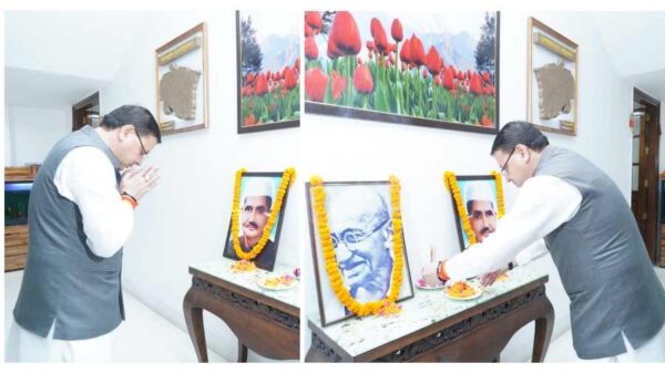 देहरादून: मुख्यमंत्री पुष्कर सिंह धामी ने मुख्यमंत्री आवास में राष्ट्रपिता महात्मा गांधी और पूर्व प्रधानमंत्री लाल बहादुर शास्त्री की जन्म जयंती के अवसर पर उनके चित्र पर श्रद्धा सुमन अर्पित कर श्रद्धांजलि दी। मुख्यमंत्री पुष्कर सिंह धामी ने गांधी जयंती के अवसर पर राष्ट्रपिता महात्मा गांधी का स्मरण कर उन्हें श्रद्धांजलि अर्पित की है। गांधी जयंती की पूर्व संध्या पर जारी अपने संदेश में मुख्यमंत्री पुष्कर सिंह धामी ने कहा कि गांधी जी के सत्य व अहिंसा के सिद्धांत आज भी प्रासंगिक है। गांधी जी ने अंग्रेजी शासन से देश को आजाद कराने में महत्वपूर्ण भूमिका निभाई थी। मुख्यमंत्री ने कहा कि हमें अपने आचरण में अहिंसा का भाव जागृत करने के साथ ही मानवता के प्रति करूणा का भाव पैदा करना होगा। यही हमारी उनके प्रति सच्ची श्रद्धांजलि होगी।