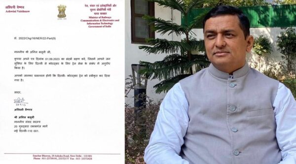 राज्यसभा सांसद अनिल बलूनी की पहली रंग लाई है। बलूनी हमेशा ही उत्तराखंड कें कार्यों के लिए लगातार जुटे रहते हैं। कोटद्वार से दिल्ली के लिए सीधी ट्रेन को लेकर भी बलूनी ने रेल मंत्री अश्वनी वैष्णव से मुलाकात थी, जिस पर रेल मंत्री ने ट्रेन की स्वीकृति दे दी है। कोटद्वार और आनंद विहार टर्मिनल दिल्ली के बीच प्रस्तावित सीधी नई एक्सप्रेस ट्रेन को रेल मंत्रालय ने स्वीकृति मिलने के साथ समय भी तय कर दिया गया है।