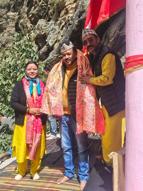 श्री बदरीनाथ धाम/ पांडुकेश्वर : नवरात्रि के नौवे दिवस के अवसर पर बद्रीनाथ मार्ग कंचनगंगा में क्षेत्र की अराध्य देवी मां नवदुर्गा तिला भराड़ी मन्दिर मे कन्या पूजन तथा मां सिद्धिदात्री स्वरूप की पूजा-अर्चना की गयी। श्री बदरीनाथ – केदारनाथ मंदिर समिति (बीकेटीसी) उपाध्यक्ष किशोर पंवार सपरिवार माता के मंदिर पहुंचकर पूजा-अर्चना में शामिल हुए तथा क्षेत्र के सुख- शांति का आशीर्वाद मांगा। इस अवसर जय मां नंदा समिति अध्यक्ष राजदेव मेहता एवं पदमेंद्र भंडारी ने बीकेटीसी उपाध्यक्ष किशोर पंवार का शाल ओढ़ाकर स्वागत किया।