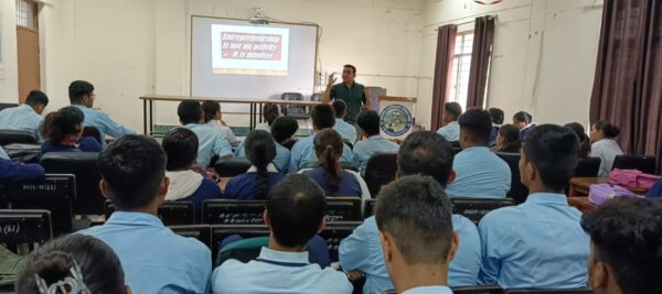 कोटद्वार  । महाविद्यालय करियर काउंसलिंग सेल व देवभूमि उद्यमिता केंद्र के संयुक्त तत्वावधान में उद्यमिता संवेदीकरण विषय पर एक जागरूकता कार्यशाला आयोजित की गयी। कार्यशाला का शुभारम्भ महाविद्यालय प्राचार्य प्रोफेसर विजय कुमार अग्रवाल द्वारा किया गया।  कार्यशाला में मुख्य वक्ता व नोडल अधिकारी देवभूमि उद्यमिता केंद्र के डॉ विनय देवलाल ने उद्यमिता विकास की आवश्यकता, महत्त्व व रोजगार के विकास में महत्वपूर्ण जानकारियां दी व  उन्होने छात्र छात्राओं को कहा कि आर्थिक विकास को गति देने में उद्यमिता विकास को एक महत्वपूर्ण घटक बताया। डॉ विनय देवलाल ने छात्र छात्रों को सफल उद्यमियों की सफलता की कहानियां सुनाकर  प्रेरित किया व स्थानीय आवश्यकताओं की पहचान कर नवाचार आधारित उद्यम स्थापित करने हेतु प्रेरित किया। महाविद्यालय प्राचार्य ने विद्यार्थियों को रोजगार हेतु उद्यमिता की दिशा अपनाने को कहा। समस्त कार्यशाला का संचालन करियर काउंसलिंग संयोजक डॉ उषा सिंह द्वारा किया गया। उक्त कार्यशाला में कला, विज्ञान, वाणिज्य संकाय के छात्र छात्राएं उपस्थित रहे।