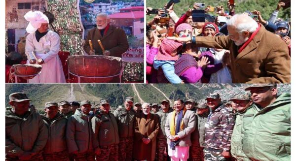 पिथौरागढ़: प्रधानमंत्री नरेन्द्र मोदी ने गुंजी गांव में स्थानीय लोगों से मिलकर उनसे बातचीत की। गुंजी गांव में दूर-दराज से पहुंचे लोग प्रधानमंत्री को अपने बीच पाकर उत्साहित दिखे। इस दौरान प्रधानमंत्री ने च्यूबाला पहनी रंगस्या (महिलाओं) से आशीर्वाद भी लिया। गुंजी में सेना के जवानों के साथ बातचीत कर प्रधानमंत्री ने उनका हौसला बढ़ाया। प्रधानमंत्री ने रं समाज कल्याण समिति के लोगों से भी भेंटवार्ता की। रं समाज कल्याण समिति के लोग पारम्परिक वेशभूषा में थे। प्रधानमंत्री नरेन्द्र मोदी ने इस अवसर पर स्वयं नगाड़ा भी बजाया।