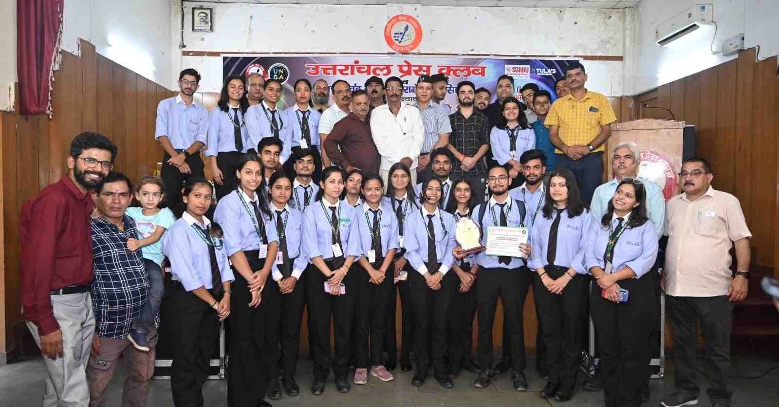 देहरादून। विश्व फोटोग्राफी दिवस के अवसर पर उत्तरांचल प्रेस क्लब और उत्तराखंड न्यूज कैमरामैन एसोसिएशन के संयुक्त तत्वावधान में प्रेस क्लब में फोटो प्रदर्शनी व गोष्ठी का आयोजन किया गया। प्रदर्शनी में पत्रकारिता कर रहे विभिन्न संस्थानों के छात्र-छात्राओं ने प्रतिभाग किया। प्रतियोगिता प्रदर्शनी ‘नेचर एवं कल्चर’ पर आधारित थी। प्रतियोगिता में प्रथम स्थान एसजीआरआर यूनिवर्सिटी की छात्रा कोमल, द्वितीय स्थान पर तुलाज इंस्टीट्यूट के छात्र गौरव और तृतीय स्थान पर तुलाज इंस्टीट्यूट के छात्र अभिषेक ने सम्मान प्राप्त किया।
