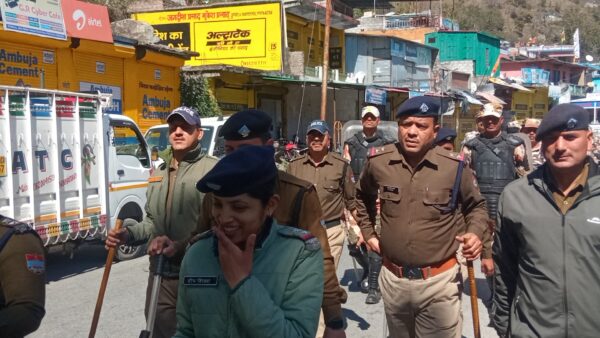 उत्तरकाशी (कीर्ति निधि सजवाण):  पुलिस अधीक्षक उत्तरकाशी अर्पण यदुवंशी के दिशा-निर्देशन में उत्तरकाशी पुलिस आगामी लोकसभा सामान्य निर्वाचन-2024 को पारदर्शी एवं शांतिपूर्ण तरीके से सम्पन्न करवाने की तैयारियों मे जुटी है, पारदर्शी चुनाव तथा आमजन में सुरक्षा का भाव पैदा करने हेतु पुलिस द्वारा सभी क्षेत्रों में लगातार फ्लैग मार्च निकाले जा रहे हैं। आज उत्तरकाशी के डुंडा में पुलिस व पैरामिलिट्री फोर्स द्वारा डुंडा बाजार मे फ्लैग मार्च निकाला गया। फ्लैग मार्च के दौरान फोर्स द्वारा आम जनता से आगामी लोकसभा सामान्य निर्वाचन में निर्भीक होकर अपने मताधिकार का प्रयोग करने की अपील की गयी। जनता को पारदर्शी, भयमुक्त चुनाव तथा सुरक्षा  का भरोसा दिलाया गया।
