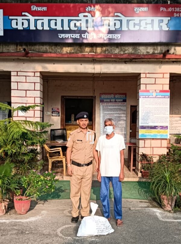 कोटद्वार। मुख्यमंत्री पुष्कर सिंह धामी द्वारा उत्तराखंड को 2025 तक नशामुक्त बनाए जाने के निर्देश पर वरिष्ठ पुलिस अधीक्षक पौड़ी लोकेश्वर सिंह द्वारा अवैध शराब की बिक्री पर अंकुश लगाने व नशा तस्करों पर समय-समय पर शिकंजा करने के आदेश निर्गत किए गए हैं। कोतवाली कोटद्वार पुलिस द्वारा बीती रात दुर्गा मंदिर के सामने प्रजापति नगर कोटद्वार स्थित एक परचून की दुकान में छापेमारी की कार्यवाही की गई। छापेमारी के दौरान पुलिस को दुकान में खाद्य सामग्री के बीच छिपाकर रखे गए भारी मात्रा में अवैध अंग्रेजी शराब के चार दर्जन से अधिक पव्वे बरामद किए गए। पुलिस ने दुकान मालिक पवन वर्मा पुत्र स्व. हुकम सिंह, निवासी प्रजापति नगर कोटद्वार को 27 पव्वे मैकडॉवल व्हिस्की और 25 पव्वे, 8 पीएम व्हिस्की के बरामद कर अभियुक्त के खिलाफ आबकारी अधिनियम के तहत मुकदमा दर्ज कर वैधानिक कार्रवाई की गई।
