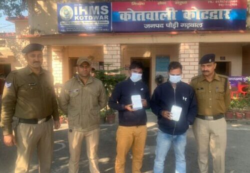 जिसके क्रम में मनिभूषण श्रीवास्तव प्रभारी निरीक्षक कोटद्वार के नेतृत्व में पुलिस टीम का गठन किया गया। गठित टीम के अथक प्रयास एवं ठोस सुरागरसी पतारसी कर शनिवार को अभियुक्त आशु चौहान पुत्र स्व0 श्याम लाल, निवासी मोहनपुर मिलाप नगर, थाना सिविल लाईन रूडकी जनपद हरिद्वार एवं रविन्द्र कुमार पुत्र स्व0 रकम सिंह, निवासी ग्राम पान्तोपुरा, थाना झिंझाना, जनपद शामली उ0प्र0, हाल पता- आशा प्रजापति शिव बिहार कालोनी बहादराबाद थाना बहादराबाद जनपद हरिद्वार को बीईएल रोड़ कोटद्वार से गिरफ्तार किया गया। गिरफ्तारशुदा अभियुक्तों को न्यायालय के समक्ष पेश कर आवश्यक वैधानिक कार्यवाही की जा रही है व अभियुक्तगणों के अन्य आपराधिक इतिहास की भी जानकारी की जा रही है।