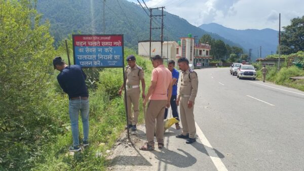 उत्तरकाशी (कीर्तिनिधि सजवाण): चारधाम यात्रा-2024 के द्वितीय चरण के सुगम, सुरक्षित संचालन तथा सड़क दुर्घटनाओं पर प्रभावी अंकुश लगाये जाने हेतु पुलिस अधीक्षक उत्तरकाशी के निर्देशन मे यातायात पुलिस उत्तरकाशी द्वारा निरीक्षक यातायात राजेन्द्र नाथ के नेतृत्व में गंगोत्री राष्ट्रीय राजमार्ग पर बरसात सीजन के दौरान बने नये संवेदनशील व दुर्घटना सम्भावित क्षेत्रों को चिन्हित कर वहां पर सुरक्षा के दृष्टिगत अथवा वाहन चालकों को सचेत करने को लेकर यातायात साईन/चेतावनी बोर्ड लगाये गये।