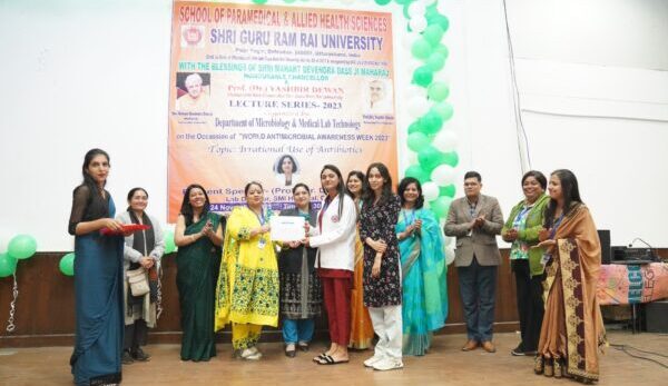 देहरादून। श्री गुरु राम राय विश्वविद्यालय के स्कूल ऑफ पैरामेडिकल एण्ड एलाईड हैल्थ साइंसेज के माइक्रोबायोलॉजी एवम् मेडिकल लैब टैक्नोलॉजी विभाग के द्वारा विश्व एंटीमाईक्रोबियल जागरूकता सप्ताह (18 नवंबर 2023 से 24 नवंबर 2023) के उपलक्ष्य में पूरे सप्ताह विभिन्न ज्ञानवर्धक व सांस्कृतिक कार्यक्रमों का आयोजन किया गया। इस बार विश्व स्वास्थ्य संगठन (डब्लयू.एच.ओ.) द्वारा विश्व माइक्रोबियल जागरूकता सप्ताह की थीम ‘प्रिवेंटिग एंटीमाइक्रोबियल रैजिसटैंस टूगेदर‘ थी।