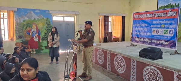 रानीपुर/हरिद्वार : साइबर अपराध की रोकथाम हेतु मुख्यालय स्तर पर चलाए जा रहे 15 दिवसीय कार्यक्रम को सफल बनाने हेतु एसएसपी हरिद्वार द्वारा अधीनस्थों को आवश्यक दिशा निर्देश दिए गए हैं। इसी क्रम रानीपुर पुलिस द्वारा अलग अलग टीम गठित कर केंद्रीय विद्यालय सेक्टर 4, इंटर कॉलेज सलेमपुर व आरजू पब्लिक जूनियर हाई स्कूल सलेमपुर में जाकर छात्र छात्राओं को साइबर अपराध की जानकारी देते हुए उसकी रोकथाम के सम्बन्ध में जागरूक किया गया। साथ ही जागरूकता कार्यक्रम चला कर निबन्ध प्रतियोगिता का भी आयोजन किया गया। ऑनलाइन साईबर ठगी के सम्बन्ध में जागरूक करते हुये तत्काल साईबर अपराध की सूचना तत्काल 1930 नम्बर पर देने हेतु बताया गया। कार्यक्रम के दौरान सभी छात्र छात्राओ, बुजुर्ग/सीनियर सिटीजनो, जनता के लोगो को उत्तराखण्ड पुलिस एप के फायदे बताये गये तथा उक्त एप्प को डाउनलोड करने व उसमें निहित अन्य एप जैसे गौरा शक्ति एप्प, साइबर शिकायत, घरेलू नौकर/किरायेदार सत्यापन, व घर बैठे ई- FIR के सम्बन्ध में जागरुक किया गया।