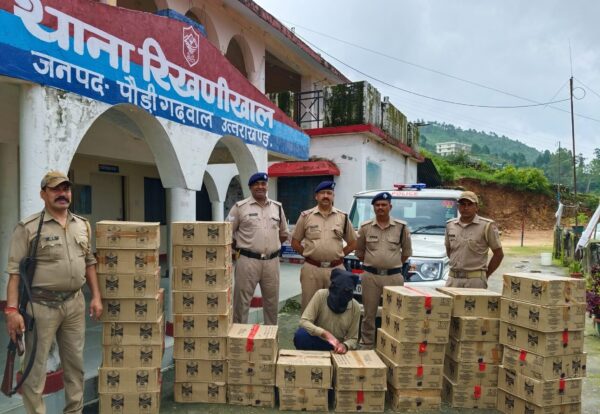 रिखणीखाल थान प्रभारी से मिली जानकारी के मुताबिक ढाबखाल कस्बे में देर रात गस्त के दौरान अनिल सिंह पुत्र स्वर्गीय विजय सिंह निवासी ग्राम सिंनाला थाना रिखणीखाल के किराये के मकान से अवैध अंग्रेजी शराब मैकडॉवल व्हिस्की की 39 पेटी (कुल 1872 पव्वों ) को बरामद किया गया है. जिस पर अभियुक्त के विरुद्ध थाने पर मु0अ0सं0-22/2024 धारा 60 आबकारी अधि0 कायम किया गया है बरामदा शराब की अनुमानित कीमत करीब 3,50000 (साढ़े तीन लाख ) रुपए आंकी गई है. गिरफ़्तार शुदा अभियुक्त को न्यायलय के समक्ष पेश कर आवश्यक वैधानिक कार्यवाही की जा रही है.