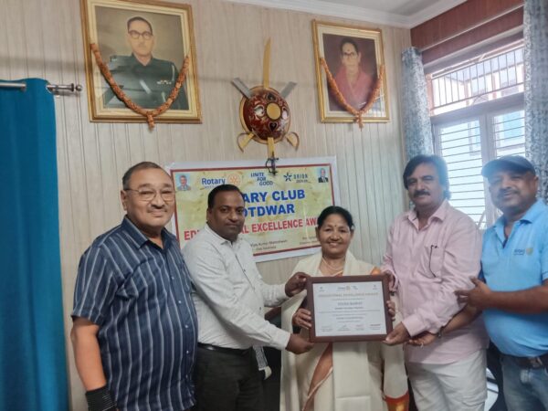 कोटद्वार । शिक्षक दिवस के उपलक्ष्य में शनिवार को रोटरी क्लब की ओर से कार्यक्रम का आयोजन किया गया। कार्यक्रम में आठ शिक्षक व शिक्षिकाओं को सम्मानित किया गया। नजीबाबाद रोड स्थित रोटरी सामुदायिक केंद्र में आयोजित शिक्षक सम्मान समारोह का शुभारंभ रोटरी अध्यक्ष ऋषि ऐरन ने किया। इस अवसर पर उन्होने कहा कि शिक्षक समाज का दर्पण होता है जो छात्रों को सही रास्ता दिखाता है। शिक्षक व शिष्य एक दूसरे के पूरक है। तत्पश्चात श्री पृथ्वी विद्या मन्दिर झण्डीचौड़ की संस्थापिका मीनाक्षी नौटियाल, अवकाश प्राप्त शारीरिक शिक्षक भारत सिंह रावत, अवकाश प्राप्त प्रधानाध्यापक दिलबर सिंह बिष्ट, रितेश शर्मा सरस्वती विद्या मन्दिर इण्टर कालेज के आचार्य रोहित बलोधी व गीता रावत, संगीत साधना केन्द्र के जीतेन्द्र सिंह बिष्ट, बीना रावत व महाविद्यालय के अवकाश प्राप्त प्राचार्य डॉ केएस नेगी को सम्मानित किया गया। इस अवसर पर क्लब सचिव विजय कुमार, कोषाध्यक्ष धनेश अग्रवाल, गोपाल बंसल, अनीत चावला, अनिल भोला, मनीष अग्रवाल व संजीव अग्रवाल सहित क्लब के अन्य सदस्य उपस्थित रहे।