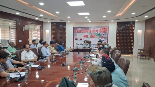 हरिद्वार : जिला सैनिक कल्याण परिषद हरिद्वार की त्रैमासिक बैठक मुख्य विकास अधिकारी आकांक्षा कोण्डे की अध्यक्षता में विकास भवन के सभागार रोशनाबाद हरिद्वार में संपन्न हुई। बैठक में जिला स्तरीय अधिकारियो एवं पूर्व सैनिकों ने प्रतिभाग किया। बैठक का संचालन जिला सैनिक कल्याण अधिकारी विंग कमांडर डॉ. सरिता पंवार (से.नि.) द्वारा किया गया, जिन्होने मुख्य विकास अधिकारी आकांक्षा कोण्डे, अन्य उपस्थित अधिकारियों एवं पूर्व सैनिकों का स्वागत करते हुए पूर्व सैनिकों की समस्याओं से मुख्य विकास अधिकारी महोदया को अवगत कराया।