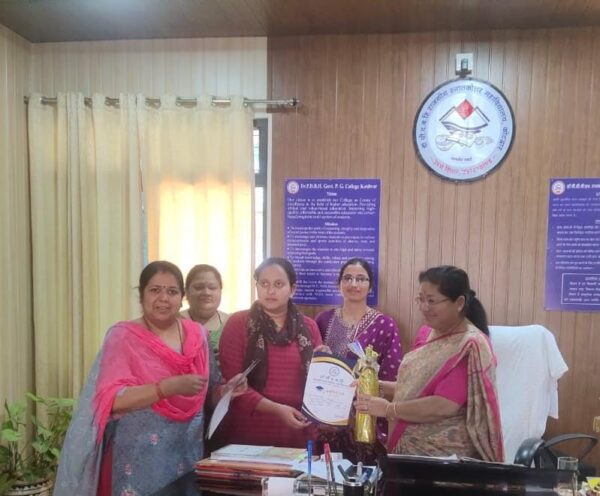इसी क्रम में संस्कृत निबंध प्रतियोगिता में उज्मा बीए चतुर्थ सेमेस्टर प्रथम, हिमानी बिष्ट बीए द्वितीय सेमेस्टर द्वितीय, नाजमीन एमए चतुर्थ सेमेस्टर तृतीय स्थान पर तथा सुहानी बीए द्वितीय सेमेस्टर सांत्वना पुरस्कार प्रदान किया गया। विजयी प्रतिभागियों को प्राचार्य प्रोफेसर जानकी पंवार ने प्रशस्ति पत्र एवं पुरस्कार प्रदान किए । संरक्षिका प्रो जानकी पंवार ने अपने मुखारविंद से छात्र छात्राओं को बताया कि कार्य के दो पहलू हार जीत, विजय पराजय है, लेकिन प्रतिभाग करना हम सभी का दायित्व है। प्रतिभाग करने से ही छात्र-छात्राओं का सर्वांगीण विकास संभव है । साथ ही उन्होंने छात्र छात्राओं को आगामी परीक्षाओं हेतु प्रोत्साहित किया ।