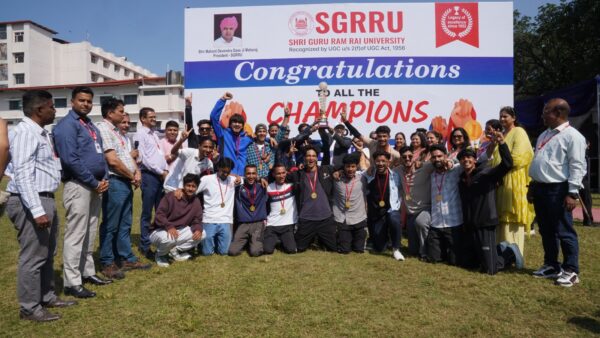 देहरादून। श्री गुरु राम राय विश्वविद्यालय (एसजीआरआरयू) की वार्षिक खेल प्रतियोगिता ‘खेलोत्सव-2025’ का भव्य समापन शनिवार को विश्वविद्यालय खेल मैदान में हुआ। छह दिवसीय इस खेल महाकुंभ में विभिन्न संकायों के छात्र-छात्राओं ने कुल 21 स्पर्धाओं में भाग लिया और अपने उत्कृष्ट प्रदर्शन से दर्शकों को मंत्रमुग्ध कर दिया। उद्घाटन गणेश वंदना से हुआ, जिसमें छात्राओं की प्रस्तुति ने सभी का मन मोह लिया। इसके पश्चात म्यूजिक विभाग के छात्रों ने जोश और उमंग से भरे गीतों की प्रस्तुति दी, जिससे पूरा मैदान “जय हो” के नारों से गूंज उठा। श्री गुरु राम राय विश्वविद्यालय केे माननीय प्रेसीडेंट श्रीमहंत देवेन्द्र दास जी महाराज ने सभी विजेताओं, छात्र-छात्राओं व खेलोत्सव के आयोजकों को सफल आयोजन के लिए बधाई व शुभकामनाएं दीं।