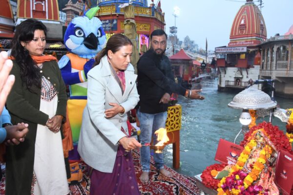 हरिद्वार : खेल मंत्री रेखा आर्या ने रविवार को हरिद्वार में मां गंगा की आरती में हिस्सा लिया और आगामी राष्ट्रीय खेलों में उत्तराखंड के खिलाड़ियों की जीत के लिए मां गंगा का आशीर्वाद मांगा। खेल मंत्री रेखा आर्या नैनीताल से लौटते हुए शाम के समय हरिद्वार में रुकी और यहां मालवीय घाट पर आयोजित कलर्स आफ उत्तराखंड कार्यक्रम में शिरकत की। खेल मंत्री रेखा आर्या ने कहा कि प्रदेश सरकार ने राष्ट्रीय खेलों की पूरी तैयारी कर ली है, सभी खेल आयोजन स्थल पूरी तरह तैयार हो चुके हैं। विभिन्न स्पर्धा में भाग लेने वाली प्रदेश की टीमों ने लगातार प्रशिक्षण शिविरों में अच्छी तैयारी की है और हमें उम्मीद है कि इन खेलों में प्रदेश की टीमों का प्रदर्शन शानदार रहने वाला है। खेल मंत्री रेखा आर्या ने कहा कि वे हरिद्वार अपने प्रदेश की टीमों के खिलाड़ियों के लिए मां गंगा का आशीर्वाद मांगने आई है, जिससे हमारे खिलाड़ी इन खेलों में बेहतर प्रदर्शन करें और सबसे ज्यादा पदक जीत कर पदक तालिका में उत्तराखंड पहले नंबर पर रहे। इसके बाद खेल मंत्री रेखा आर्या ने गंगा आरती में हिस्सा लिया। इस अवसर पर हरिद्वार की जिला खेल अधिकारी शबाली गुरुंग व अन्य अधिकारी मौजूद रहे।