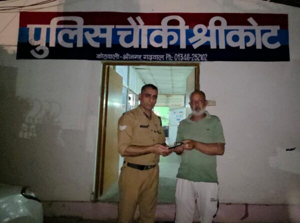 श्रीनगर : वरिष्ठ पुलिस अधीक्षक लोकेश्वर सिंह द्वारा जनपद के समस्त पुलिस कार्मिकों को दैनिक ड्यूटियों का निर्वहन करने के साथ साथ मानवता वादी भरे कार्यो को करने हेतु भी प्रोत्साहित किया जा रहा है। इस क्रम में दर्शन सिंह निवासी-श्रीनगर द्वारा चौकी श्रीकोट आकर सूचना दी गयी कि उनका मोबइल फोन श्रीकोट में कहीं खो गया है खोए फोन को उनके द्वारा काफी तलाश करने के बाद भी मोबाइल नहीं मिल पाया।