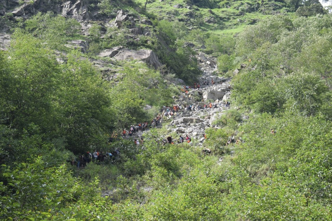 रुद्रप्रयाग : केदारघाटी में अत्यधिक बारिश के बाद जिला प्रशासन द्वारा पूरी मुस्तैदी से रेस्क्यू कर यात्रियों को लगातार सुरक्षित स्थानों पर पहुंचाने का कार्य किया जा रहा है। अब तक 375 यात्रियों का हैली के माध्यम से तथा 1460 यात्रियों का सफल मैनुअल रेस्क्यू किया जा चुका है। इनमें 40 महिलाएं तथा 25 बच्चे भी शामिल हैं। मौके पर उप जिलाधिकारी ऊखीमठ सहित एसडीआरएफ, डीडीआरएफ, एनडीआरएफ की टीमें मौजूद हैं जिनके द्वारा लगातार रेस्क्यू किया जा रहा है।