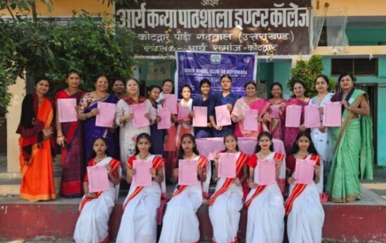 कोटद्वार। स्वस्थ शरीर में ही स्वस्थ मस्तिष्क निवास करता है। सफाई हमारे लिए बहुत आवश्यक है चाहे वह व्यक्तिगत हो या पर्यावरण की। व्यक्तिगत सफाई के अंतर्गत इनर व्हील क्लब कोटद्वार ने गुरुवार को आर्य कन्या इंटर कॉलेज में छात्राओं को सफाई व हाइजीन के बारे में बताया गया एवं छात्राओं को 100 सेनेटरी पैड वितरित किए ।  साथ ही फिनायल, हैंड वॉश व हार्पिक भी प्रदान किया गया । जिससे कि विद्यालय में स्वच्छता बढ़े । पर्यावरण स्वच्छ होगा तो  बीमारियां कम होगी। पीसीओडी समस्याओं की पहचान में मदद करने के लिए छात्राओं व शिक्षिकाओं को एमसी ट्रैकर भी बांटे गए। अध्यापन में सुविधा हेतु कुछ शिक्षण सामग्री भी प्रदान की गई। इस कार्यक्रम में विद्यालय की प्रधानाचार्य रेनु नेगी उपस्थित रही। कार्यक्रम की संयोजक हेमलता अग्रवाल रही। कार्यक्रम में क्लब अध्यक्ष लतिका गोयल, सपना अग्रवाल, अर्चना भाटिया, व वीना एलाबादी उपस्थित रही ।