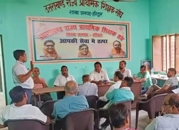 रुड़की। उत्तराखंड राज्य प्राथमिक शिक्षक संघ हरिद्वार की जिला कार्यकारिणी की बैठक शिक्षक भवन बोंगला में आयोजित की गयी। बैठक में ब्लॉक अध्यक्ष ब्लॉक मंत्री एवं ब्लॉक कोषाध्यक्ष एवं जिला कार्यकारिणी सदस्य मौजूद रहे। कार्यकारिणी में सर्वप्रथम रिक्त पड़े कोषाध्यक्ष पद पर बहादराबाद के पंकज लोचन को मनोनीत किया एवं जिलाकार्यकारिणी में रिक्त पड़े पदों पर मुनीश यादव को जिला संगठन मंत्री, संजय वत्स को जिला प्रवक्ता, राजीव शर्मा को विशेष आमंत्रित सदस्य एवं रविराज सैनी को संगठन में सदस्य बनाया जिसका बैठक में उपस्थित सभी सदस्यों ने स्वागत किया। उसके उपरांत बैठक में चयन/प्रोन्नत वेतनमान, कोटिकरण को पुनः करने एवं प्राथमिक विद्यालयों में पदोन्नति को विभागीय देरी होने पर चर्चा की गई। जिस पर बैठक में सभी पदाधिकारियों ने विभागीय देरी होने पर रोष व्यक्त किया।