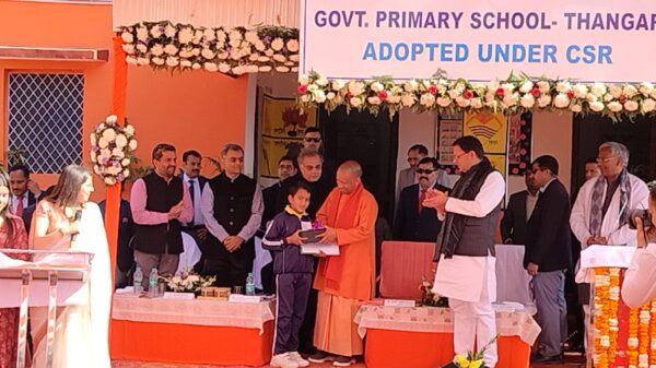 कोटद्वार। उत्तर प्रदेश के मुख्यमंत्री योगी आदित्यनाथ व उत्तराखंड के मुख्यमंत्री पुष्कर सिंह धामी ने यमकेश्वर विकासखंड के अंतर्गत राजकीय प्राथमिक विद्यालय ठांगर का नव निर्माण व सौंदर्यीकरण कार्य का लोकार्पण किया। वहीं उन्होंने ग्राम पंचुर बारात घर का प्रथम चरण व द्वितीय चरण निर्माण कार्य का 9.80 लाख की लागत से लोकार्पण किया। इस दौरान उन्होंने स्कूल में जाकर स्कूली बच्चों के साथ संवाद व विद्यालय का निरीक्षण किया। साथ ही उन्होंने आईजीएल की वार्षिक पुस्तिका का विमोचन भी किया। उसके बाद उन्होंने राजकीय जूनियर हाई स्कूल कांडी व राजकीय प्राथमिक विद्यालय विथ्याणी में भी जाकर विद्यालय का लोकार्पण किया और स्कूल के बच्चों के साथ बातचीत कर विद्यालय का निरीक्षण किया। इसके अलावा दोनों मुख्यमंत्री ने बच्चों को चॉकलेट भी वितरित किए।