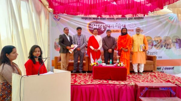 हरिद्वार : चंडी घाट के मनोरम तट पर आयोजित आयुष्कामीय शिविर के दूसरे दिन आज आयुष विभाग द्वारा विशिष्ट आर्युवेदिक, युनानी, होम्योपैथिक, योग एवं प्राकृतिक चिकित्सा विधाओं द्वारा आने वाले रोगियों की चिकित्सा की गई। उत्तराखंड आयुर्वेद विश्वविद्यालय द्वारा स्वर्ण प्राशन आदि विशिष्ट चिकित्सा की प्रदर्शनी का आयोजन किया गया। डिवाइन कॉलेज के शिक्षकों एवं छात्र-छात्राओं द्वारा प्रदर्शनी और निः शुल्क ब्लड शुगर की जांच एवं अन्य पैथोलॉजी जांच किए गए। आयुर्वेद एवं प्रकृति के विभिन्न विषयों पर आयोजित गोष्ठी की अध्यक्षता आशीष भैया, संस्थापक दिव्य प्रेम सेवा मिशन एवं विश्व विख्यात मर्म चिकित्सा विशेषज्ञ प्रोफेसर सुनील जोशी, पूर्व कुलपति उत्तराखंड आयुर्वेद विश्वविद्यालय द्वारा की गई l साथ में विशिष्ट अतिथि के रुप में स्वामी अनंतानंद जी महाराज कृष्णायन गौशाला बायो सीएनजी प्लांट, राजीव योगी जैविक कृषि विशेषज्ञ, डॉ. सुशील शर्मा, वरिष्ठ हृदय रोग विशेषज्ञ, इंटीग्रेटिव कार्डियोलॉजी सेंटर, रामकृष्ण मिशन सेवाश्रम कनखल, राष्ट्रीय आयुष मिशन के नोडल अधिकारी डॉ. अवनीश उपाध्याय शिविर प्रभारी डॉक्टर धनेंद्र वशिष्ठ उपस्थित रहे।
