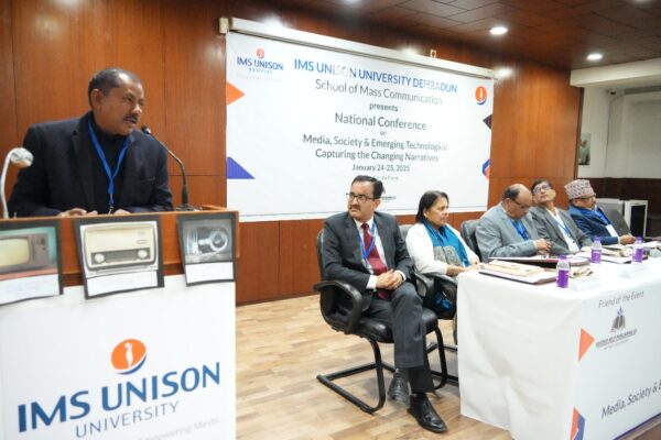 देहरादून : आज के समय में मीडिया समाज की धारणा बदलने में सशक्त भूमिका निभा रहा है। भूमंडलीकरण के समय अत्यधिक खुलापन आने से ज्ञान और सूचनाओं के आदान प्रदान से विकास की संभावनाएं खुली है। उप निदेशक सूचना मनोज श्रीवास्तव ने IMS Unison University Dehradun में पत्रकारिता विभाग द्वारा आयोजित कार्यशाला में विचार व्यक्त किया। उन्होने कहा मीडिया में टेकनॉलाजी के बढते प्रयोग से जहा लोगों कि परम्परागत धारणाएं बदली है, वही पर मीडिया की जिम्मेदारी भी बढ़ गई है।