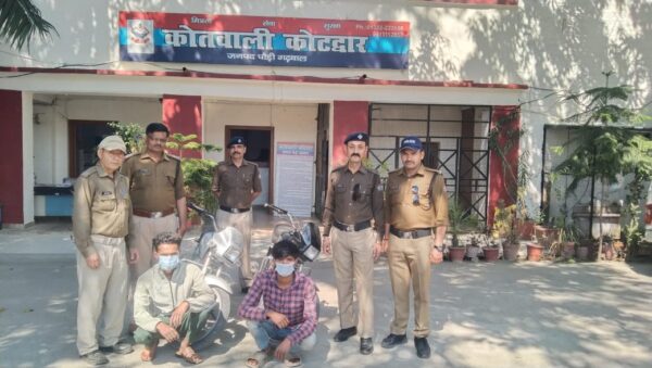 पुलिस टीम के अथक प्रयासों से सनेह रोड कोटद्वार के पास से दो अभियुक्त संदीप सिंह, उम्र 19 वर्ष, पुत्र कुलवंत सिंह, निवासी-कुआं खेड़ा, थाना-बढ़ापुर, जिला- बिजनौर, उत्तर प्रदेश व राज शर्मा, उम्र 19 वर्ष, पुत्र राजेंद्र शर्मा, निवासी- गुमानीवाला, ऋषिकेश जनपद- देहरादून को चोरी की मोटर साइकिल के साथ गिरफ्तार किया गया। इसके अतिरिक्त पुलिस टीम द्वारा अभियुक्तों के कब्जे से एक अन्य मोटर साइकिल भी बरामद की गयी है जो इनके द्वारा हरिद्वार से चोरी की गयी थी। चोरी की इस घटना में संलिप्त एक अन्य अभियुक्त मंगल सिंह पुत्र हरवंश सिंह, निवासी कुआं खेड़ा थाना बढ़ापुर जिला बिजनौर जो कि फरार चल रहा है जिसकी गिरफ्तारी हेतु पुलिस टीम द्वारा लगातार प्रयास किया जा रहा है। गिरफ्तारशुदा उक्त दो अभियुक्तों को न्यायालय के समक्ष पेश कर आवश्यक वैधानिक कार्यवाही की जा रही है।
