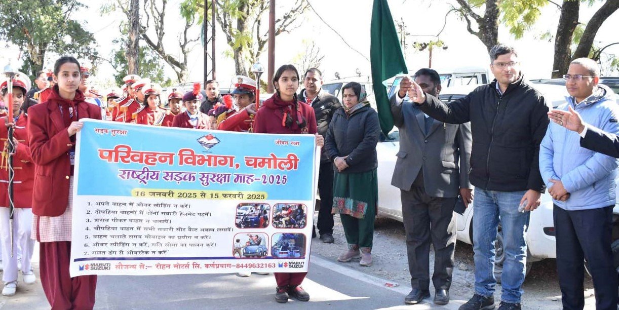 गोपेश्वर (चमोली)। सड़क दुर्घटनाओं रोकथाम और आमजन को यातायात नियमों के प्रति जागरूक करने को लेकर परिवहन विभाग के तत्वाधान में 15 फरवरी तक सड़क सुरक्षा माह मनाया जा रहा है। सड़क सुरक्षा माह के तहत सोमवार को जिला मुख्यालय में छात्रों ने विशाल रैली निकालते हुए यातायात नियमों का पालन करने के लिए लोगों को जागरूक किया। जिलाधिकारी चमोली संदीप तिवारी ने क्लेक्ट्रेट परिसर से हरी झंडी दिखाकर जागरूकता रैली को रवाना किया। इस दौरान जिलाधिकारी ने सुरक्षित यातायात नियमों का पालन करने हेतु सड़क सुरक्षा शपथ भी दिलाई।