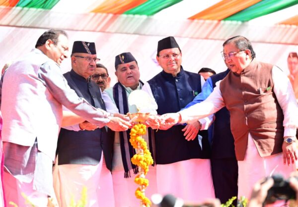 देहरादून : मुख्यमंत्री पुष्कर सिंह धामी ने शनिवार को देहरादून स्थित शहीद स्थल कचहरी परिसर में उत्तराखंड राज्य आंदोलनकारी शहीदों को पुष्पांजलि अर्पित कर उन्हें श्रद्धांजलि दी। इसी क्रम मेंउत्तराखंड राज्य स्थापना के रजत जयंती वर्ष के अवसर पर मुख्यमंत्री ने पुलिस लाइन में आयोजित राज्य आंदोलनकारी सम्मान समारोह में राज्य आंदोलनकारियों और शहीद राज्य आंदोलनकारियों के परिवारजनों को सम्मानित किया। कचहरी परिसर शहीद स्थल और पुलिस लाइन देहरादून में इस अवसर पर राज्य आंदोलनकारियों पर हेलीकॉप्टर से पुष्प वर्षा भी की गई ।