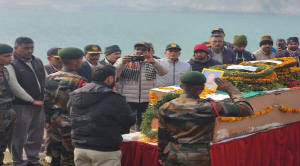उत्तरकाशी : चीन सीमा पर शहीद हुए सैनिक शैलेन्द्र का बुधवार को सैन्य सम्मान के साथ उनके पैतृक घाट पर अंतिम संस्कार किया गया !गढ़वाल रायफल के गढ़वाल स्काउट में कुमराडा गांव निवासी शैलेंद्र कठैत का सैनिक सम्मान के साथ उनके पैतृक घाट कुमराड़ा में बुधवार को अंतिम संस्कार कर दिया गया। सैकड़ों ग्रामीणों ने नम आंखों से उन्हें अंतिम विदाई देकर श्रद्धांजली दी। सैनिक शैलेंद्र कठैत (28) पुत्र कृपाल सिंह की चीन बॉर्डर के गोल्डुंग पोस्ट नितीपास बॉर्ड पर पेट्रोलियम ऑपरेशन के दौरान पैर फिसलने से 15 जनवरी को मौत हो गई थी।