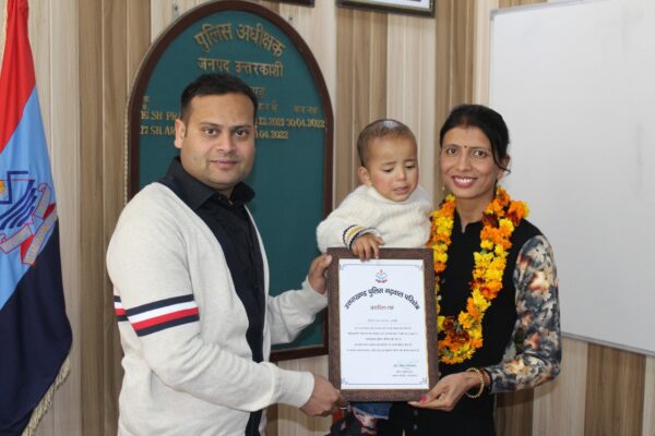 उत्तरकाशी (कीर्ति निधि सजवाण): महिला आरक्षी माया खनका के स्वैच्छिक सेवानिवृत्ति के अवसर पर पुलिस कार्यालय उत्तरकाशी में विदाई समारोह का आयोजन किया गया। विदाई समारोह में अर्पण यदुवंशी, पुलिस अधीक्षक उत्तरकाशी द्वारा सेवानिवृत महिला आरक्षी को स्मृति चिन्ह, शॉल व उपहार भेंट करते हुये उनके उत्तम स्वस्थ्य एवं सुखद पारिवारिक जीवन की कामना के साथ विदाई दी गई, एस0पी0 द्वारा उनकी पुलिस विभाग को दी गयी अहम योगदान की सराहना करते हुये बताया गया कि भविष्य में पुलिस विभाग से सम्बन्धित कोई भी कार्य हो तो निसंकोच उसे साझा करें, उनका प्राथमिकता के आधार पर समाधान किया जायेगा। पुलिस उपाधीक्षक उत्तरकाशी प्रशान्त कुमार द्वारा महिला आरक्षी को सेवानिवृत्त की शुभकामना देते हुये उपहार भेंट किया गया तथा साथी कर्मचारियों द्वारा भी माया खनका को पुष्प गुच्छ व उपहार भेंट कर सेवानिवृत की शुभकामनाएं दी गयी। महिला आरक्षी माया खनका मूल रुप से चम्बा, जनपद टिहरी गढवाल की निवासी हैं, वर्ष 2007 में वह पुलिस विभाग मे भर्ती हुयी, इनके द्वारा जनपद उत्तरकाशी में अपनी सेवाएं दी गयी, वर्तमान समय में वह थाना धरासू पर नियुक्त थीं।