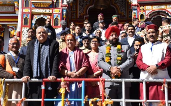 चमोली : भारत के उप राष्ट्रपति जगदीप धनखड़ ने अपनी पत्नी डॉ. सुदेश धनखड के साथ भगवान बद्री विशाल के दर्शन किए और देश की एकता, अखंडता और विश्व शांति के लिए प्रार्थना की। इस दौरान उत्तराखंड के राज्यपाल लेफ्टिनेंट जनरल (सेनि) गुरमीत सिंह भी उनके साथ मौजूद रहे। उप राष्ट्रपति अपने निर्धारित कार्यक्रम के तहत 27 अक्टूबर, 2023 को वायुसेना के विशेष विमान से बद्रीनाथ आर्मी हेलीपैड पहुंचे। हेलीपैड पर जिलाधिकारी हिमांशु खुराना, पुलिस अधीक्षक रेखा यादव के साथ ही अन्य वरिष्ठ अधिकारियों ने पुष्प गुच्छ भेंट कर उपराष्ट्रपति का स्वागत किया। यहां से उपराष्ट्रपति कार से बद्रीनाथ मंदिर पहुॅचे। मंदिर में करीब 25 मिनट तक बद्री विशाल की वेदपाठ एवं विशेष पूजा की। बद्रीनाथ के मुख्य पुजारी रावल ईश्वर प्रसाद नंबूदरी एवं तीर्थपुरोहितों ने वैदिक मंत्रोच्चारण के साथ विधिवत पूजा संपन्न की और प्रसाद स्वरूप उन्हें बद्री तुलसी माला, बद्री प्रसाद और अंग वस्त्र भेंट किए।
