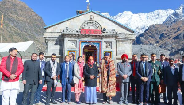 केदारनाथ भ्रमण पर पहुचें उप राष्ट्रपति, भारत सरकार जगदीप धनखड़ करीब 9ः15 बजे वायु सेना के हेलीकॉप्टर से वीआईपी हैलीपैड़ पर पहुचें। यहाँ राज्यपाल ले.जन. (से.नि.) गुरमीत सिंह, जिलाधिकारी डॉ. सौरभ गहरवार, पुलिस अधीक्षक विशाखा अशोक भदाणे, एडीएम बीर सिंह बुदियाल, उप जिलाधिकारी ऊखीमठ जितेंद्र वर्मा, भाजपा जिलाध्यक्ष महावीर पंवार, केदार सभा के अध्यक्ष राजकुमार तिवारी ने पुष्प भेंट कर उप राष्ट्रपति का स्वागत किया। मंदिर के समीप केदार सभा, मंदिर समिति, तीर्थ पुरोहित समाज ने परंपरागत मंत्रोच्चारण एवं रूद्राक्ष की माला पहना कर उनका स्वागत किया। साथ ही बाबा केदारनाथ का वस्त्र बाघंबर ओढ़ा कर उनका सम्मान किया। जिसके बाद उन्होंने मंदिर में प्रवेश कर सपत्नी डाॅ. सुदेश धनखड़ बाबा केदारनाथ का रूद्राभिषेक व जलाभिषेक एवं विशेष पूजा-अर्चना कर देश के उत्थान एवं जन कल्याण की कामना की। करीब 30 मिनट की पूजा अर्चना कर उन्होंने बाबा केदारनाथ का आशीर्वाद प्राप्त किया।