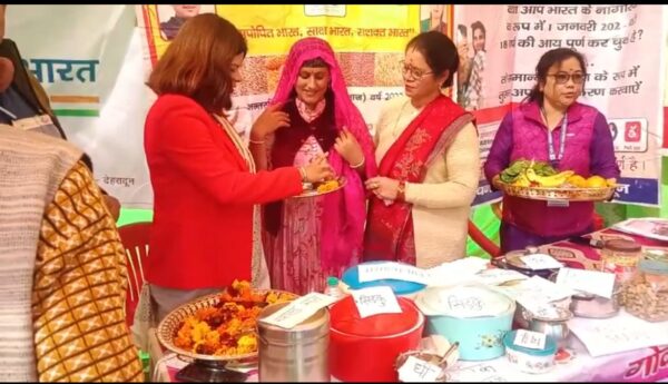देहरादून : उत्तराखंड के जनजातीय क्षेत्रों में विकसित भारत संकल्प यात्रा का क्रम जारी है। इसी कड़ी में बुधवार को देहरादून के चकारात ब्लॉक के ग्राम अटाल में संकल्प यात्रा का रथ पहुंचा, जिसका ग्रामीणों ने गाजे-बाजे और पारम्परिक जौनसारी परिधानों के साथ स्वागत किया। इस कार्यक्रम में गन्ना, खद्या आपूति, बिजली, बाल विकास, स्वास्थ्य आदि विभाग उपस्थित रहे। इन विभागों द्वारा कार्यक्रम में स्टॉल्स भी लगाए गए थे, जिससे लोग जन कल्याणकारी योजनाओं के बारे में जानकारी ले कर लाभान्वित हो सकें। संकल्प यात्रा के दौरान ग्रामीणों ने विकसित भारत बनाने की शपथ भी ली। इस दौरान मौजूद लोगों को मानीनय राष्ट्रपति और प्रधानमंत्री नरेंद्र मोदी का विकसित भारत को लेकर संबोधन सुनाया गया।