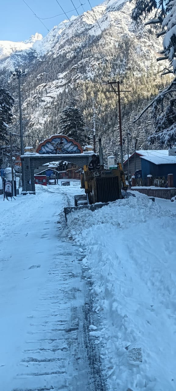 उत्तरकाशी : दो दिनों तक बर्फबारी के बाद जिले में आज मौसम आमतौर पर सामान्य रहा। गंगा जी के शीतकालीन प्रवास स्थल मुखवा और यमुना जी के शीतकालीन स्थल खरसाली के साथ ही जिले के ऊंचाई वाले क्षेत्रों में हिमाच्छादित सड़कों पर जमा बर्फ को हटाकर आज यातायात को सुचारू कर लिया गया है। गंगोत्री धाम तक भी आज बर्फ हटाकर यातयात बहाल कर दिया गया है।