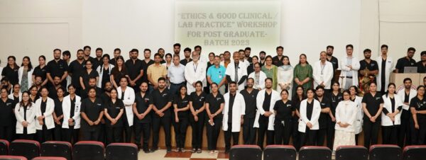 कार्यशाला के अंत में प्रतिभागियों के प्रश्नों का समाधान भी विशेषज्ञों द्वारा किया गया, जिससे छात्र-छात्राओं को व्यावहारिक ज्ञान का लाभ मिला। फार्माकोलॉजी विभाग की डॉ. शालू बावा ने नेशनल मेडिकल कमिशन द्वारा प्रेस्क्रिप्शन से संबंधित जारी गाइडलाइंस की जानकारी दी और कहा कि डॉक्टर का हस्तलिखित पर्चा स्पष्ट व पठनीय होना आवश्यक है, जिससे मरीज व कैमिस्ट दोनों को भ्रम की स्थिति न हो। उन्होंने कहा कि दवाओं के जैनरिक नाम प्रेस्क्रिप्शन में लिखा जाना उचित रहता है। उन्होंने यह भी स्पष्ट किया कि एलोपैथिक डॉक्टर को अपने पर्चे में केवल एलोपैथिक दवाएं ही लिखनी चाहिए, अन्य किसी पद्धति की दवाओं की सलाह देना कानूनी रूप से गलत है। कार्यशाला में नैदानिक प्रयोगशाला संचालन, रिपोर्टिंग में पारदर्शिता, मरीज की जानकारी की गोपनीयता और पेशेवर आचरण जैसे विषयों पर विशेषज्ञों द्वारा गहन चर्चा की गई। इस शिक्षाप्रद कार्यशाला ने विद्यार्थियों को चिकित्सा के नैतिक व तकनीकी पक्षों की व्यावहारिक समझ प्रदान की, जो उनके भावी चिकित्सा जीवन के लिए उपयोगी सिद्ध होगी।